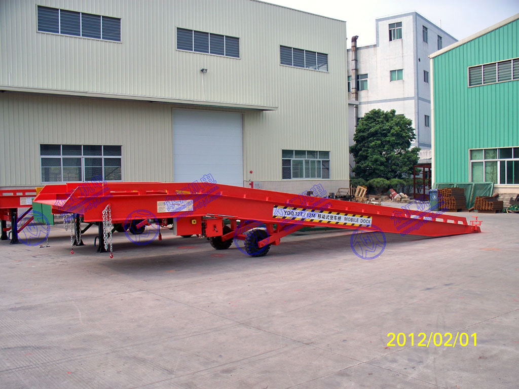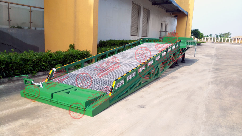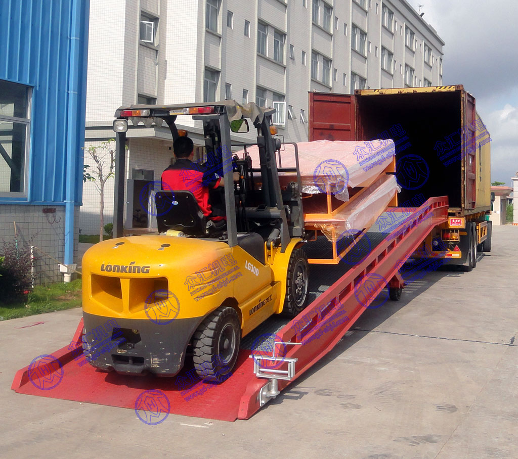 移動式登車橋是實現貨物快速裝卸的專用輔助設備,它的高度調節功能使貨車與庫房的貨臺之間架起一座橋梁,叉車等搬運車輛通過它能直接駛入貨車內部進行貨物的批量裝卸,僅需單人作業,即可實現貨物的快速裝卸。
