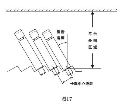 平臺外圍區域不足時,鋸齒形平臺是最佳選擇(圖1 7)。它可大大減少卡車靠泊或駛離裝卸區所需的外圍區域空間。