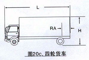 (圖20)是常見貨柜車的樣式及相關尺寸位置,要注意的是,貨車底板高度在裝卸貨過程中會有高達15厘米的變化。氣懸臂系統同樣會影響這些尺寸。(圖20)作為初始設計的參考,最終設計應以量度及調查實際貨車尺寸為準。