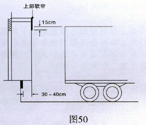 ● 上部軟簾的下沿應(yīng)低于貨車高度15厘米(圖50)。