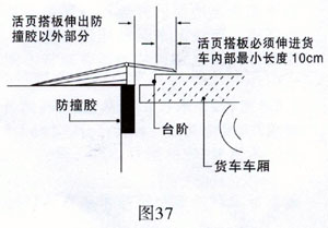 調節板前端的活頁搭板必須伸進貨車內部足夠長度以保證牢固可靠的支撐。根據美國國家標準學會MH14.1標準,這一長度應不短于10厘米(圖37)。